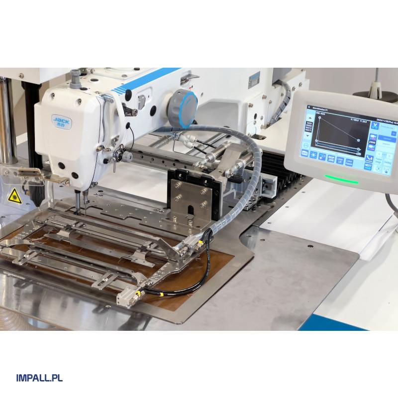 JACK JK-T3520MA to programowalna maszyna do szycia wzorów przeznaczona do skomplikowanych operacji szycia i zautomatyzowanej produkcji.