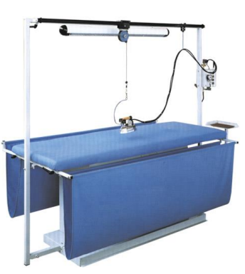 Stół prasowalniczy Comel MP/F/T 300×100 prostokątny do prasowania materiałów o dużej powierzchni (m.in. zasłon) o rozmiarach 300 x 100 cm z odsysaniem i podgrzewaniem elektrycznym.