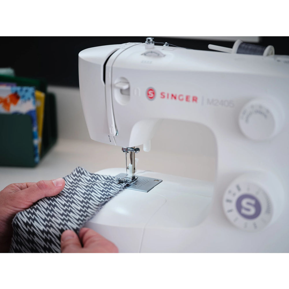 SINGER® M2405 to świetny wybór dla osób szukających prostej i skutecznej maszyny do szycia, która poradzi sobie z wieloma zadaniami.