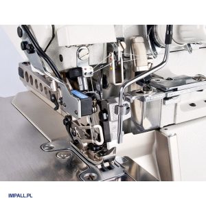 Dzięki nowoczesnemu, energooszczędnemu silnikowi serwo, maszyna osiąga wysoką prędkość szycia do 7500 ściegów na minutę, pracując cicho i oszczędnie. Mechanizm dolnego transportu różnicowego gwarantuje równomierne prowadzenie materiału. Maszyna wykorzystuje system igieł B27 z rozstawem igieł 2 mm, a szerokość obszycia wynosi 3 mm, z całkowitą szerokością ściegu 5 mm. Zasilanie 230V oraz wymóg podłączenia do źródła sprężonego powietrza pozwalają na obsługę funkcji pneumatycznych.