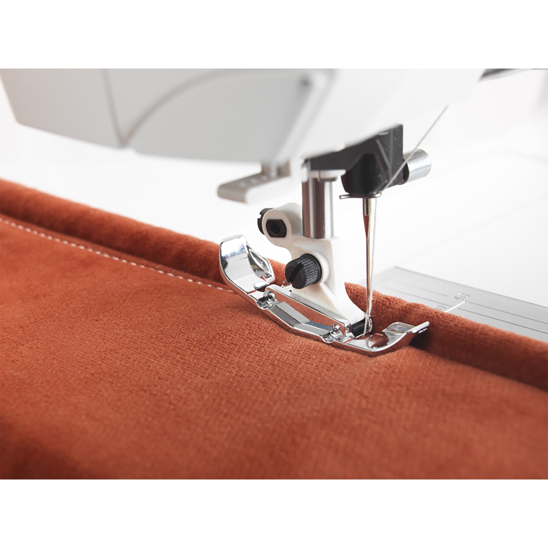Stopka Mega Piping została zaprojektowana specjalnie do wszywania grubych wypustek dekoracyjnych w szwy oraz na krawędziach, zapewniając eleganckie, profesjonalne wykończenie projektów wnętrzarskich. Może być mocowana z prawej lub lewej strony igły, co umożliwia zarówno tworzenie wypustek, ich wszywanie, jak i estetyczne stebnowanie przy krawędzi.