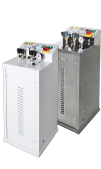 Profesjonalna wytwornica pary ze zbiornikiem na wodę i pompą wirową zasilającą automatycznie o mocy 550 W. Oszczędność czasu, wydajność oraz komfort pracy w jednym urządzeniu. Kocioł zbudowany ze stali inox o pojemności do 7 litrów. Przystosowana do podłączenia 2 żelazek. Wyposażona we wszystkie niezbędne dla bezpieczeństwa pracy instrumenty (zawór bezpieczeństwa, kontrolka poziomu wody, manometr kontrolujący ciśnienie oraz dwa elektrozawory do regulacji pary). Obudowa urządzenia może być wykonana ze stali nierdzewnej inox lub stali lakierowanej.